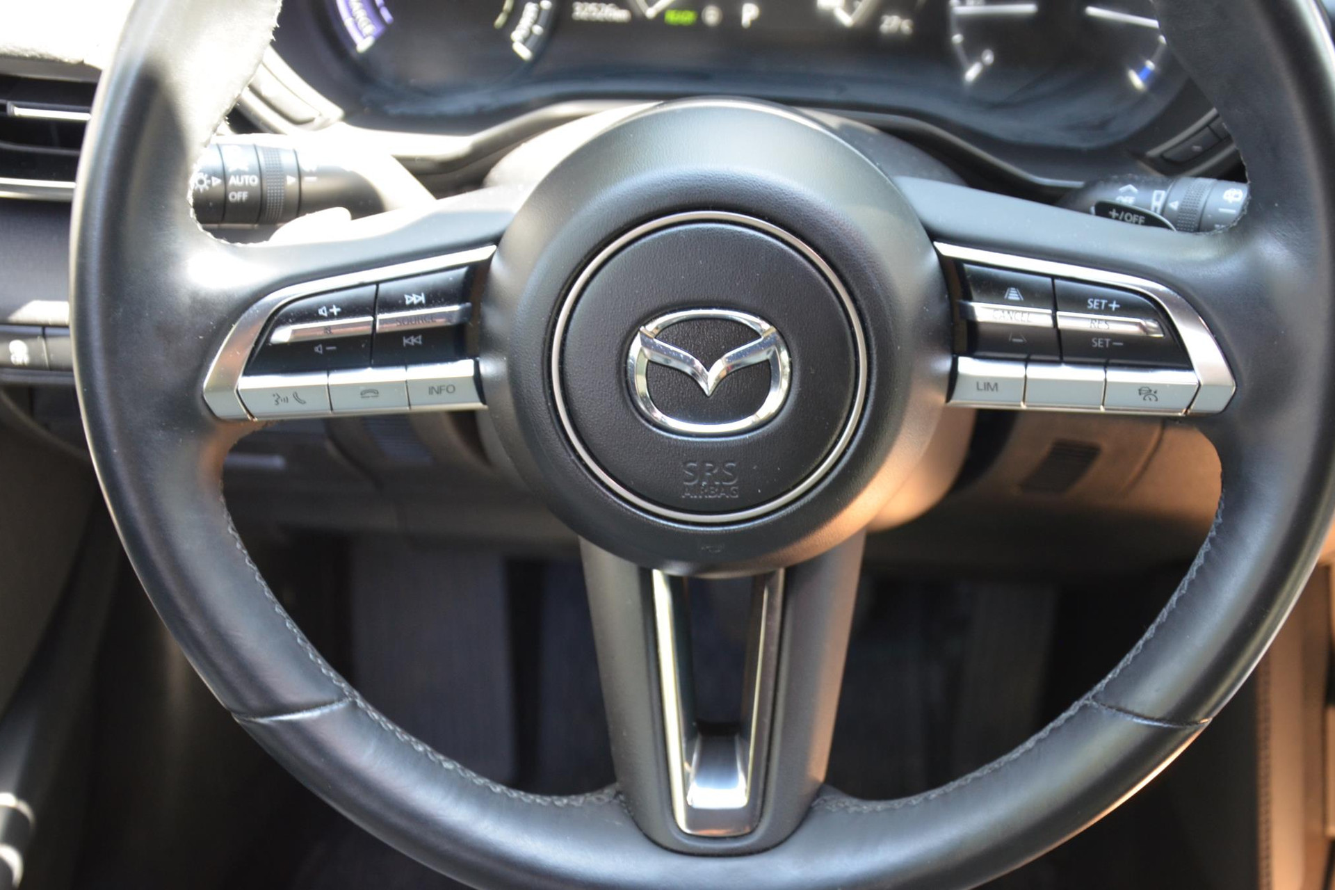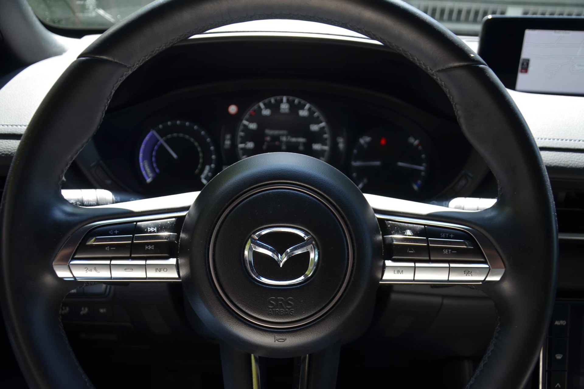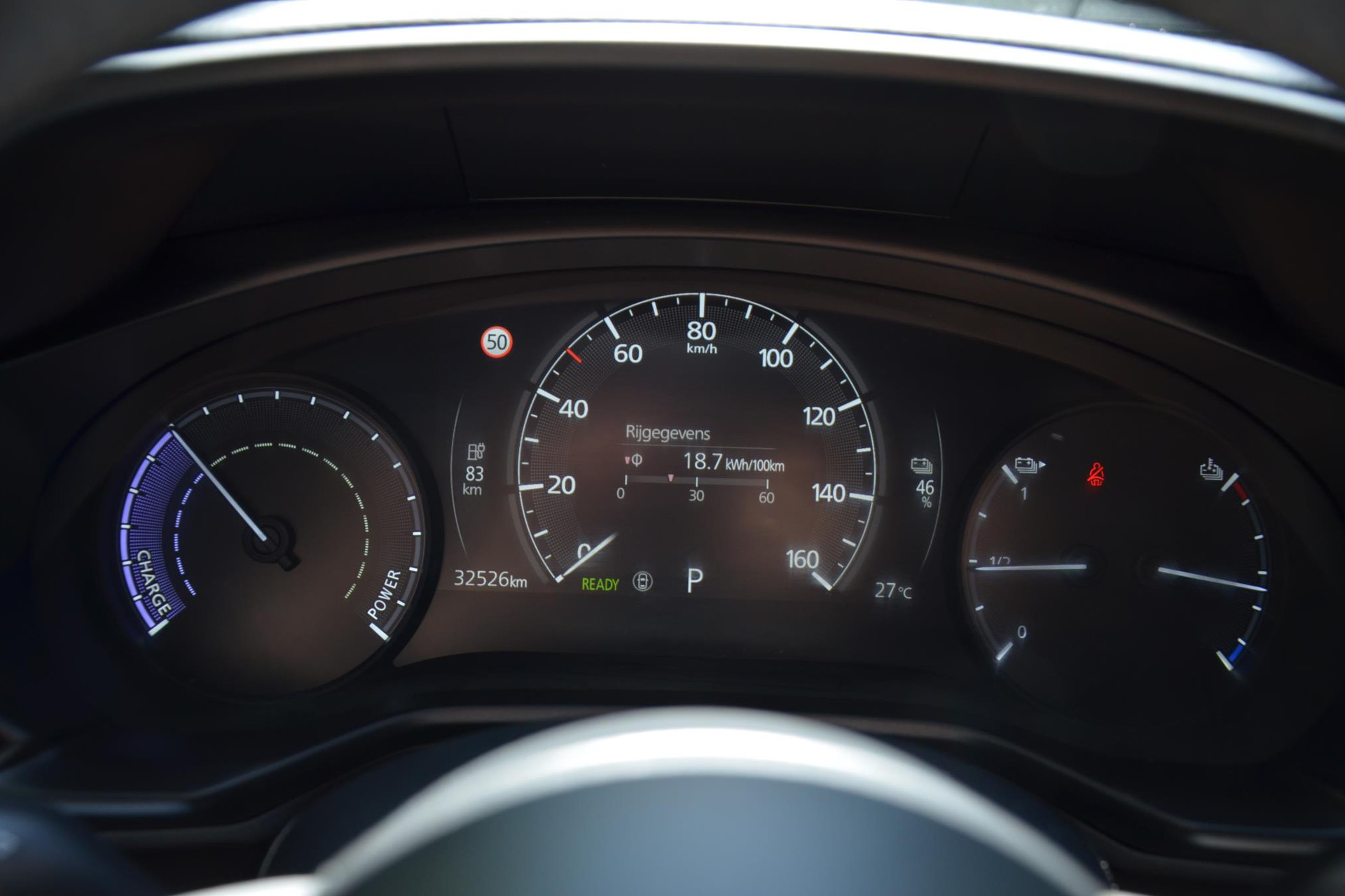 Voor storingvrije digitale radio-ontvangst zorgt de DAB-ontvanger. Zuinig, veilig en ontspannen op pad: dat kan dankzij het aanwezige navigatiesysteem. Dankzij electronic climate control is het interieur behaaglijk warm of verfrissend koel. ‘Boem is ho′? Niet met deze achteruitrijcamera. U ziet achter net zo goed als voor en krijgt een duidelijk geluidssignaal! Het luxeniveau in deze Mazda is niet alleen gericht op comfort, maar ook op uw veiligheid. Tal van sensoren helpen u om de omgeving in de gaten te houden. De automatisch inschakelbare verlichting zorgt dat automatisch de verlichting wordt ingeschakeld als het donker wordt, wat bijvoorbeeld in tunnels erg handig is. De regensensor zet de ruitenwissers aan zonder dat u eraan hoeft te denken en de adaptive cruise control helpt u om afstand te bewaren van het verkeer voor u. Deze Mazda MX-30 denkt vooruit als u van plan bent af te slaan. De kruisend verkeer detectie calculeert en analyseert het tegemoetkomende verkeer en waarschuwt als het risico op aanrijding bestaat. Heeft u de elektronische token op zak, dan herkent deze auto z′n baasje en de keyless start zorgt dat een druk op de startknop voldoende is. Geen sleutel meer nodig! Met verstelbaar stuur, automatisch dimmende binnenspiegel en centrale deurvergrendeling met afstandsbediening is deze auto helemaal compleet.