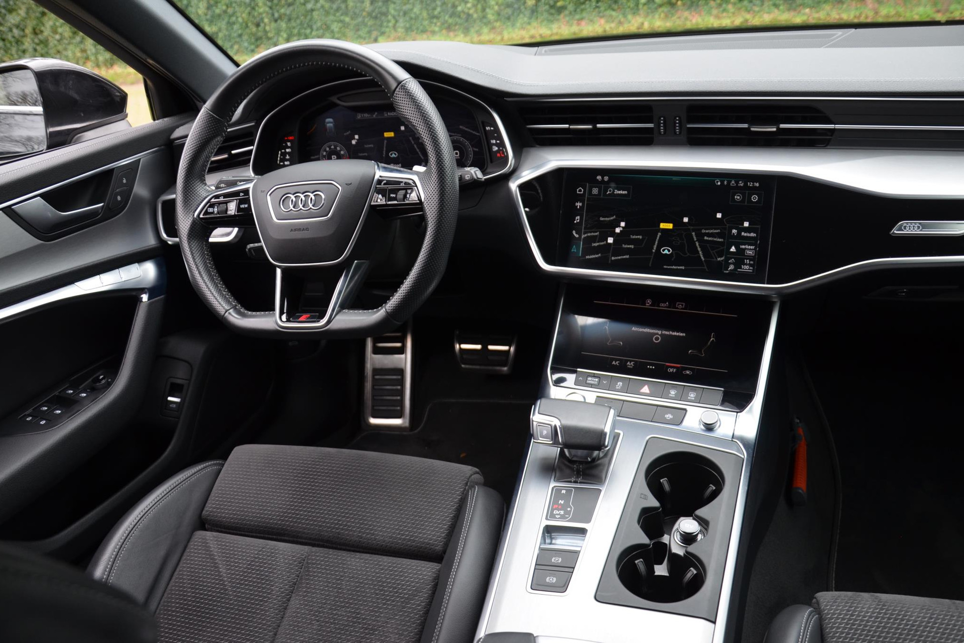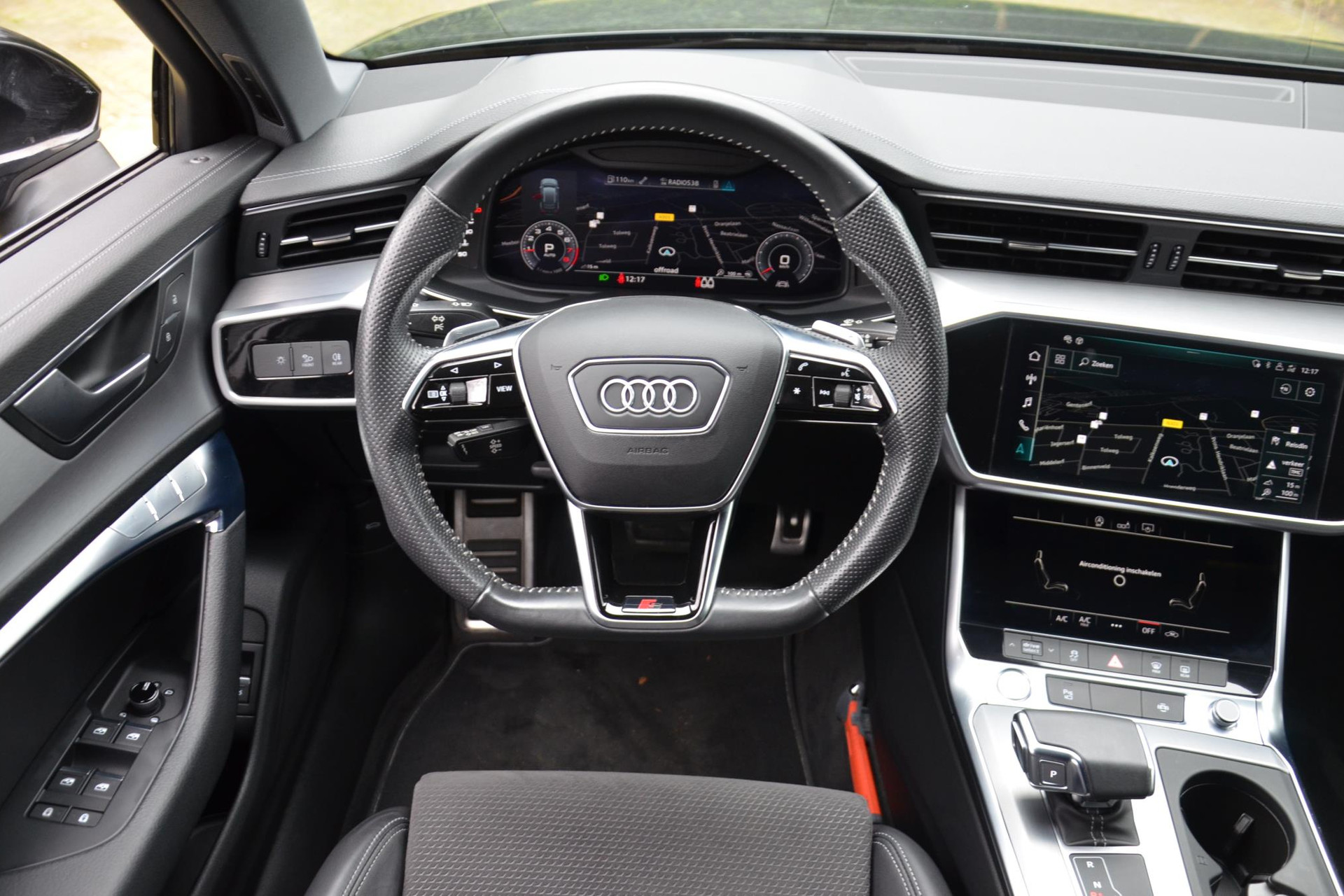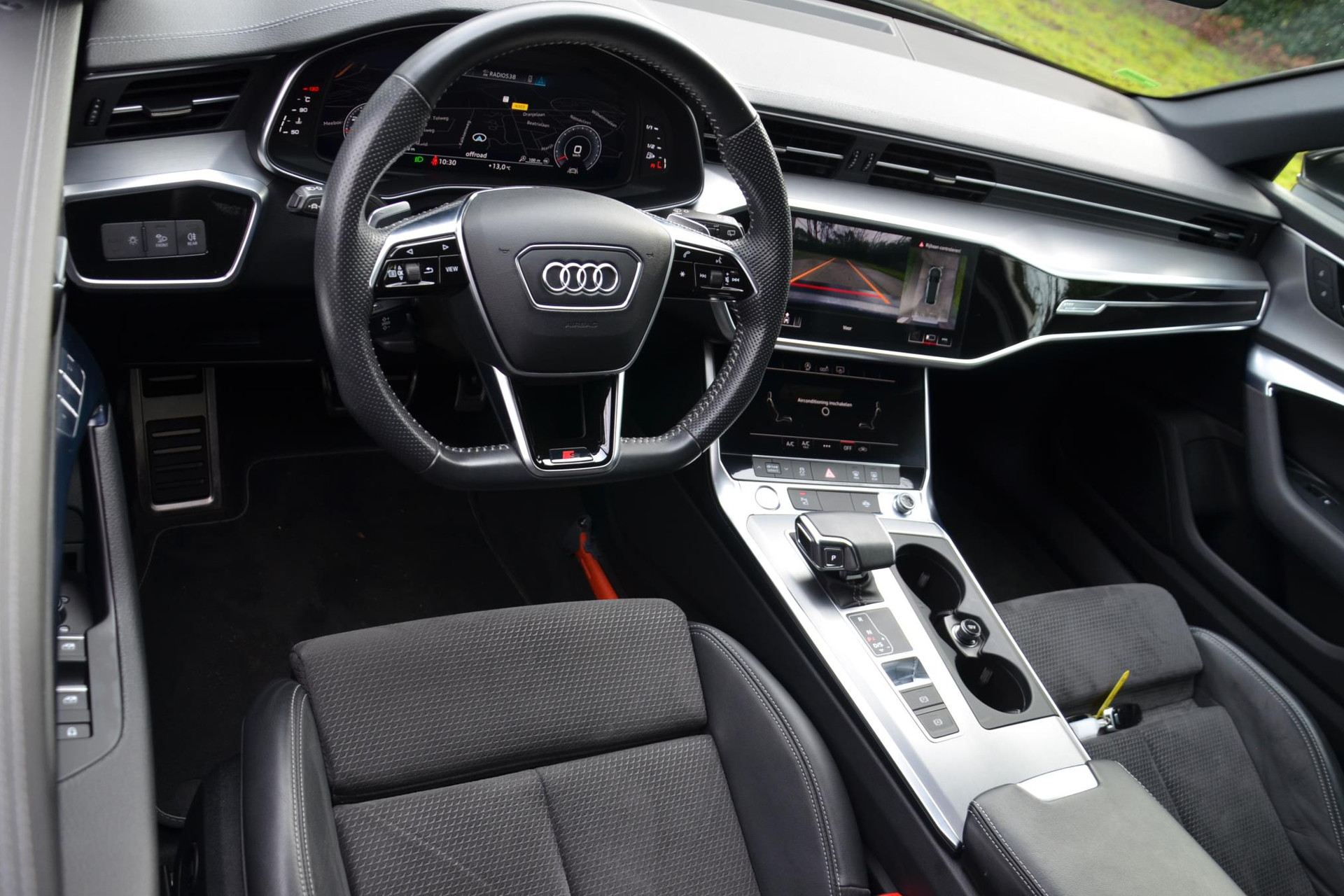 Rijfuncties worden glashelder en overzichtelijk weergegeven via het digitale dashboard. Het inventieve 360 graden camerasysteem op deze auto heeft de functie om u assistentie te bieden in nauwe ruimtes en straten, waar het achteruit rijden vaak een uitdaging is. Uw smartphone wordt een dashboard, met alle functies in beeld. Dankzij Connected Services en de speciale app. Terwijl het full map navigatiesysteem de ideale route voor u uitstippelt, geniet u van de kwaliteit van het audio-installatiesysteem. De bediening is bovendien gemakkelijk via knoppen op het stuur. Nooit meer te warm of te koud. De electronic climate control zorgt altijd voor de temperatuur die u kiest. Met sportstuur met schakelpaddels, regensensor, cruise control, keyless entry, automatisch dimmende buitenspiegels en centrale deurvergrendeling met afstandsbediening is deze Audi helemaal compleet.
