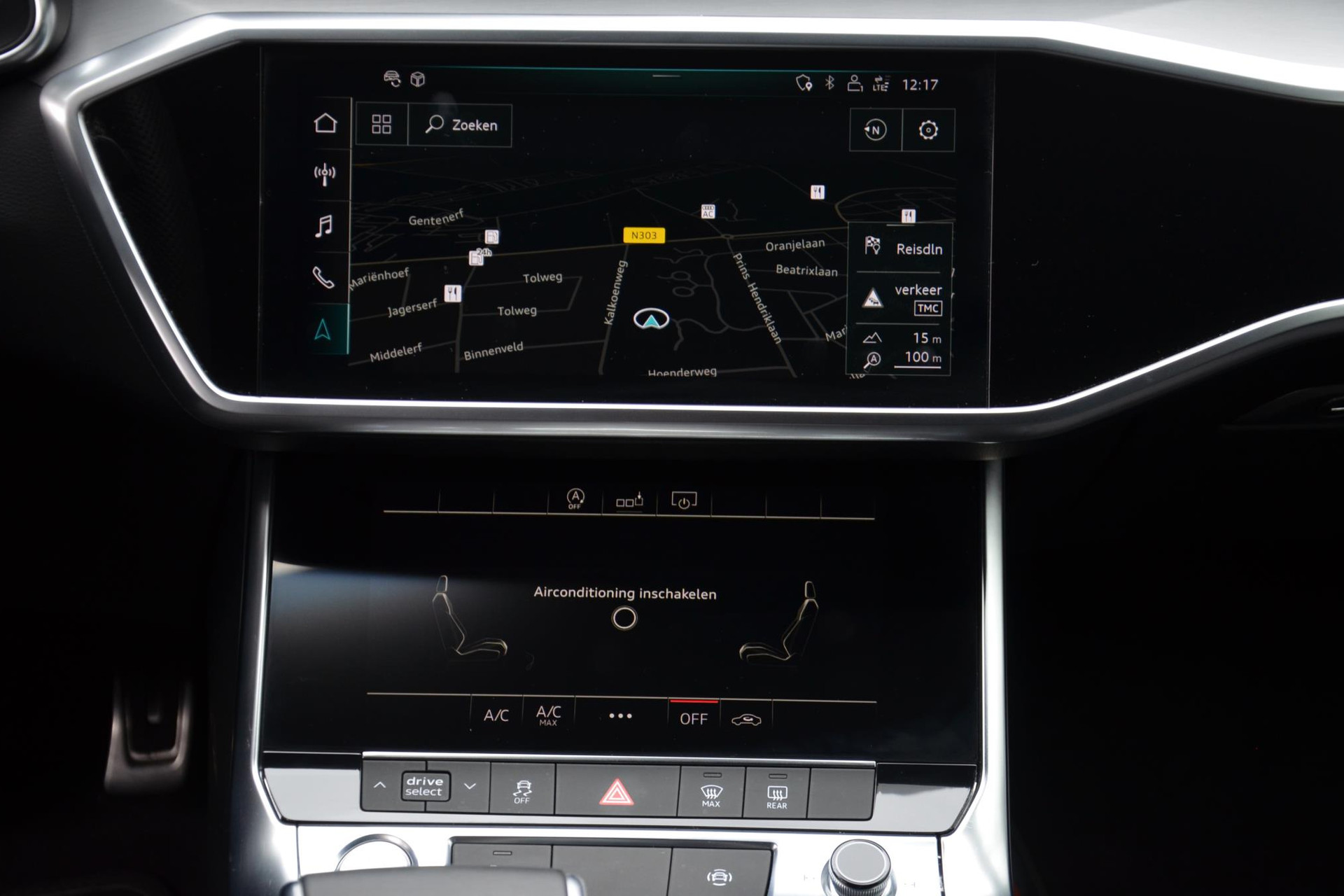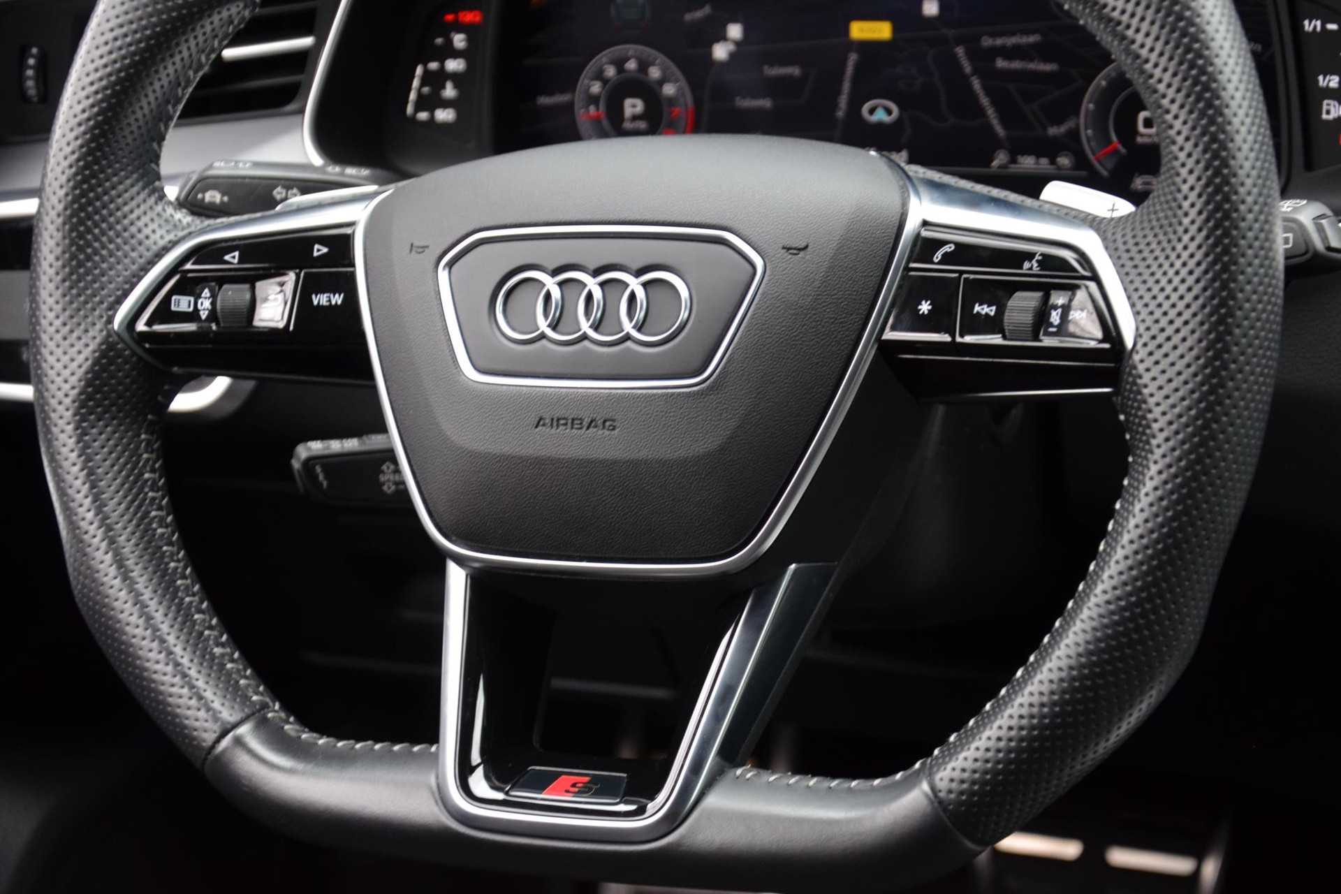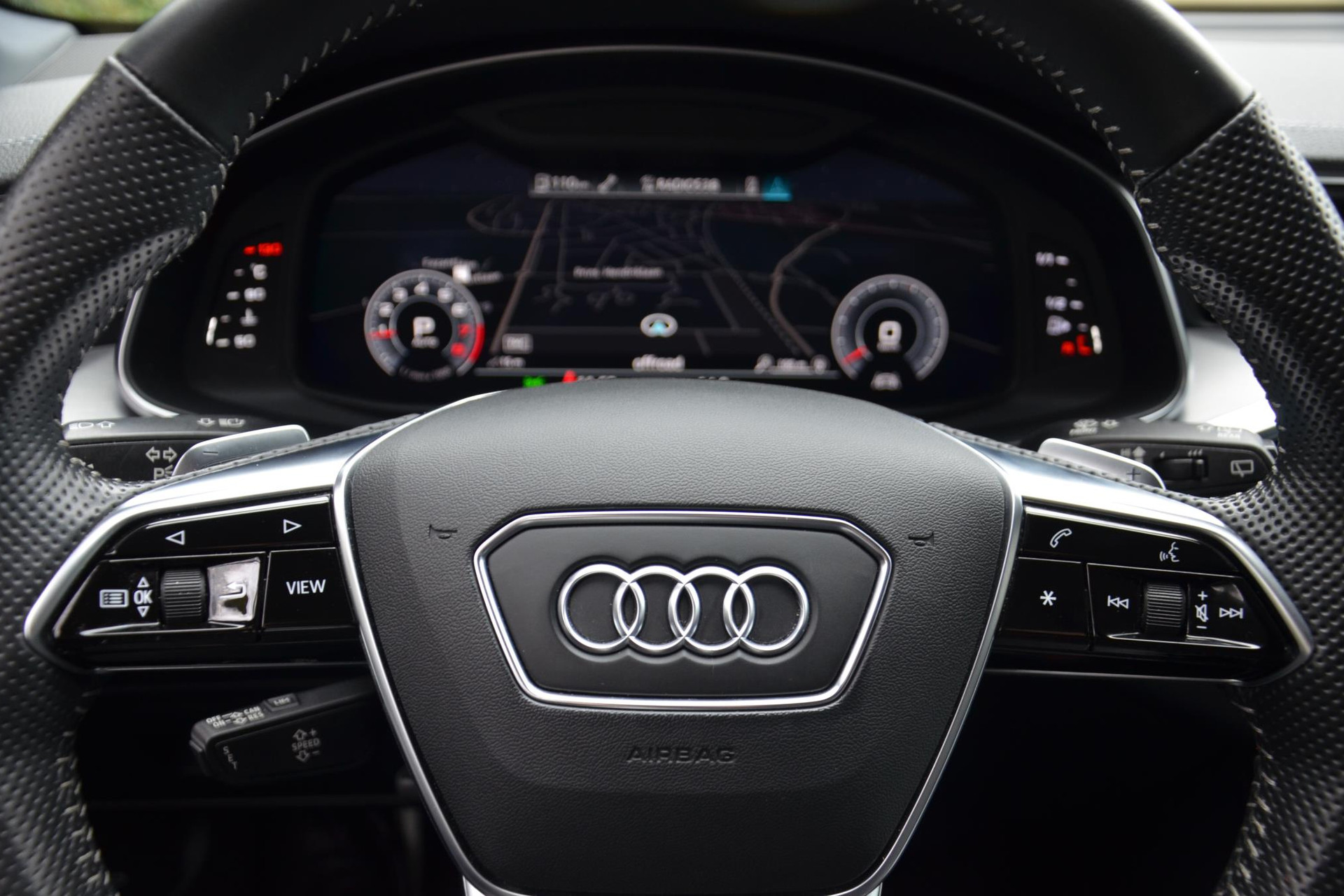 Rijfuncties worden glashelder en overzichtelijk weergegeven via het digitale dashboard. Het inventieve 360 graden camerasysteem op deze auto heeft de functie om u assistentie te bieden in nauwe ruimtes en straten, waar het achteruit rijden vaak een uitdaging is. Uw smartphone wordt een dashboard, met alle functies in beeld. Dankzij Connected Services en de speciale app. Terwijl het full map navigatiesysteem de ideale route voor u uitstippelt, geniet u van de kwaliteit van het audio-installatiesysteem. De bediening is bovendien gemakkelijk via knoppen op het stuur. Nooit meer te warm of te koud. De electronic climate control zorgt altijd voor de temperatuur die u kiest. Met sportstuur met schakelpaddels, regensensor, cruise control, keyless entry, automatisch dimmende buitenspiegels en centrale deurvergrendeling met afstandsbediening is deze Audi helemaal compleet.