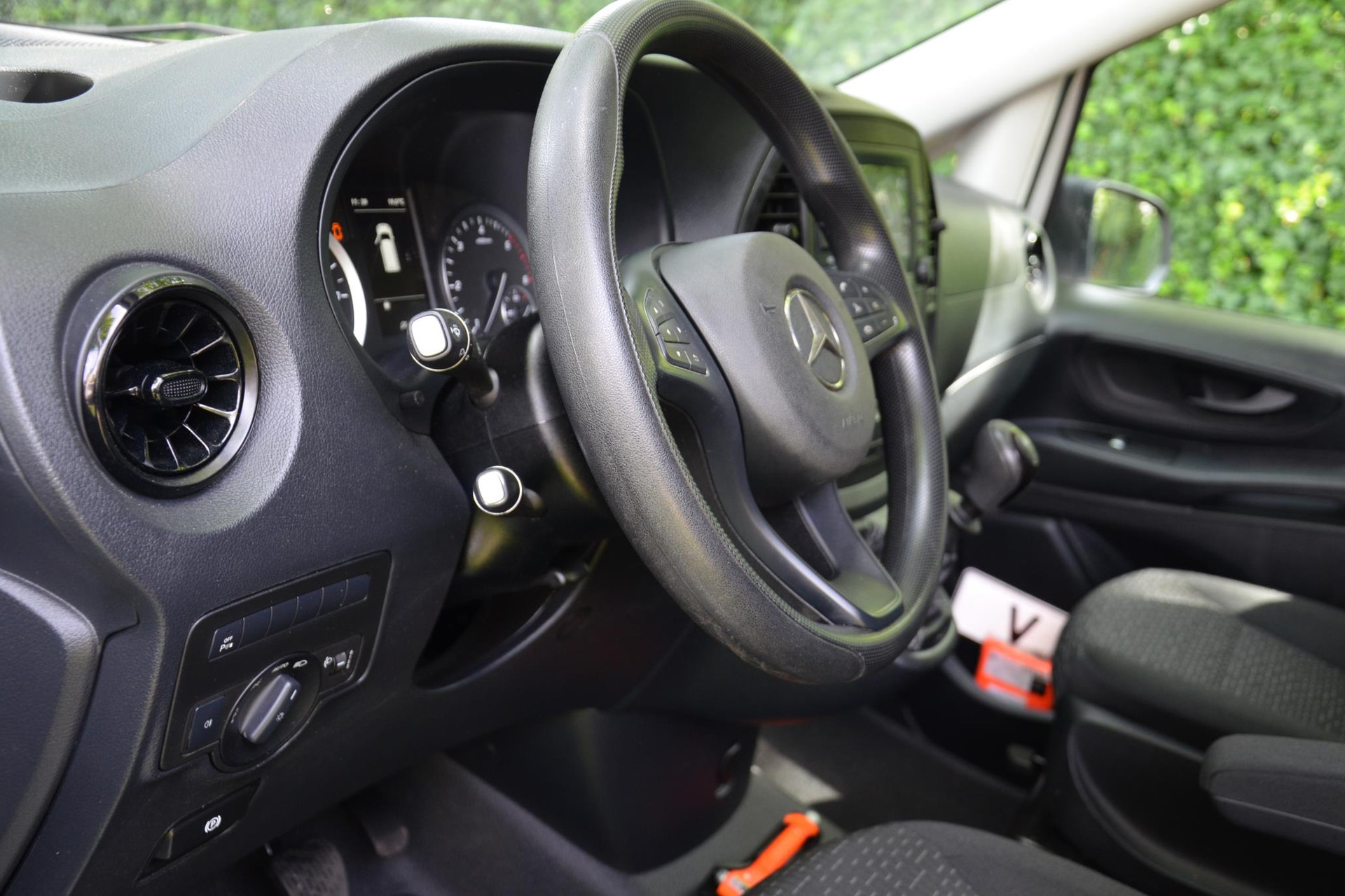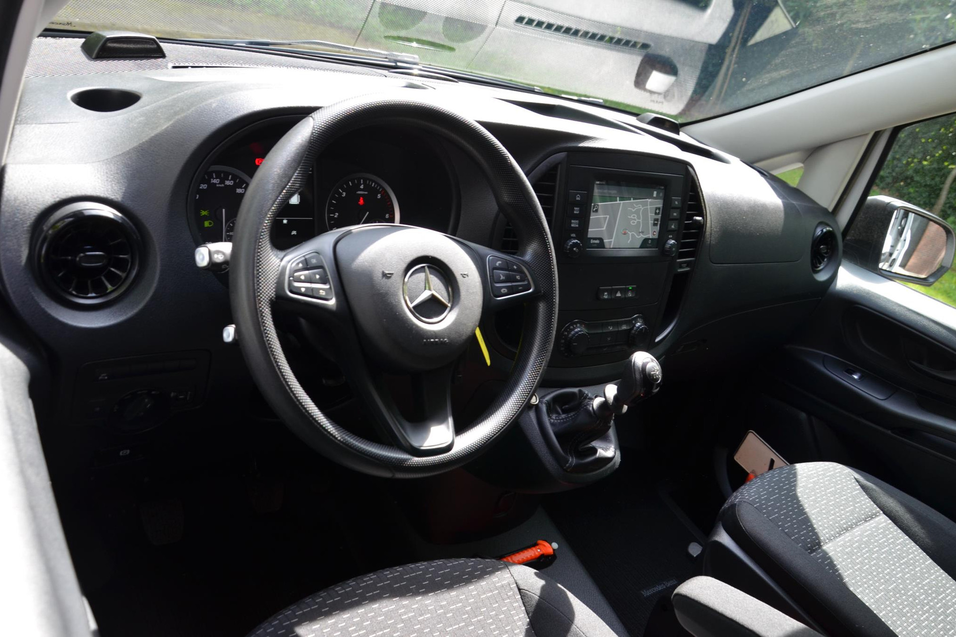 Deze Mercedes-Benz Vito staat garant voor vele veilige en comfortabele kilometers. De aandrijving komt voor rekening van een dieselmotor en een handgeschakelde zesversnellingsbak. Passagiers nemen achterin veilig plaats via de schuifdeur met ruime opening. Bij de uitrusting van deze Mercedes-Benz horen onder meer warmtewerend glas, trailer assistent, elektrisch verstelde en verwarmde buitenspiegels, elektrisch bedienbare ramen voor en start-stopsysteem.